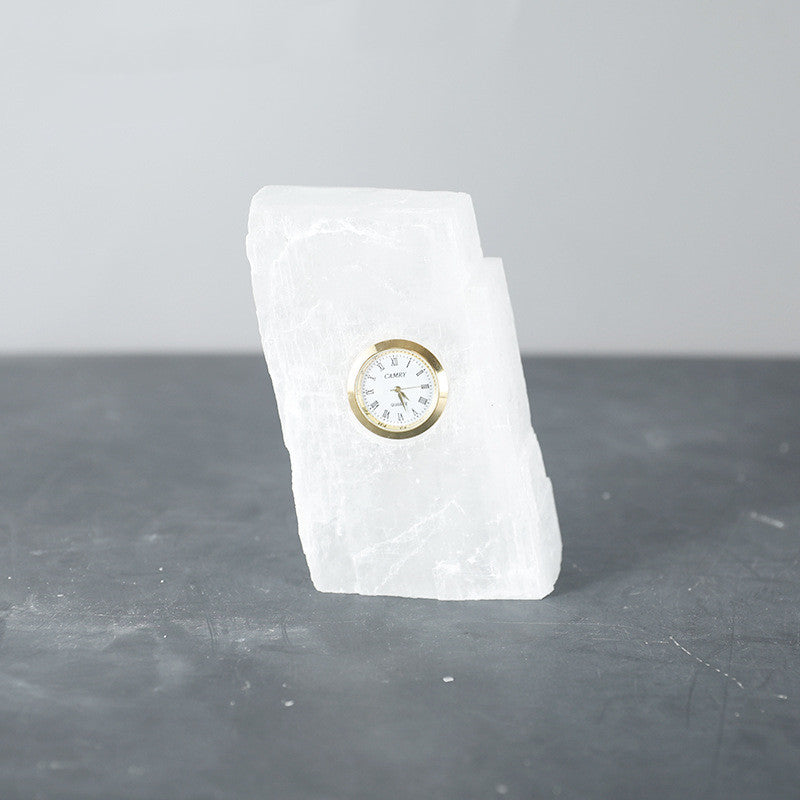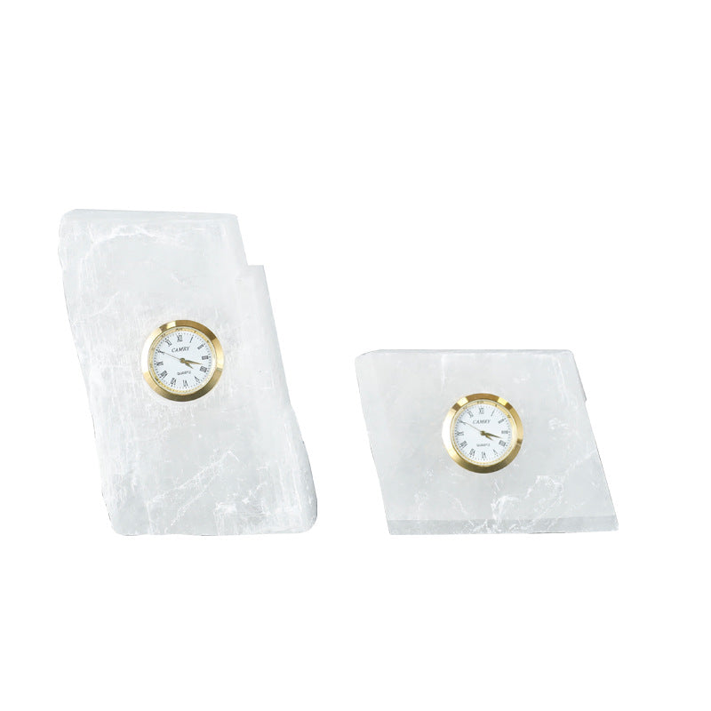 Bring a touch of serene elegance to your workspace or home with our Handcrafted Natural Stone Desk Clock. Carved from high-quality mineral-style stone, each piece features unique textures and a translucent glow that captures the light beautifully.
